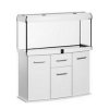 Akváriová súprava s akváriom, podložkou pod akvárium, pevnou skrinkou a hliníkovým krytom.