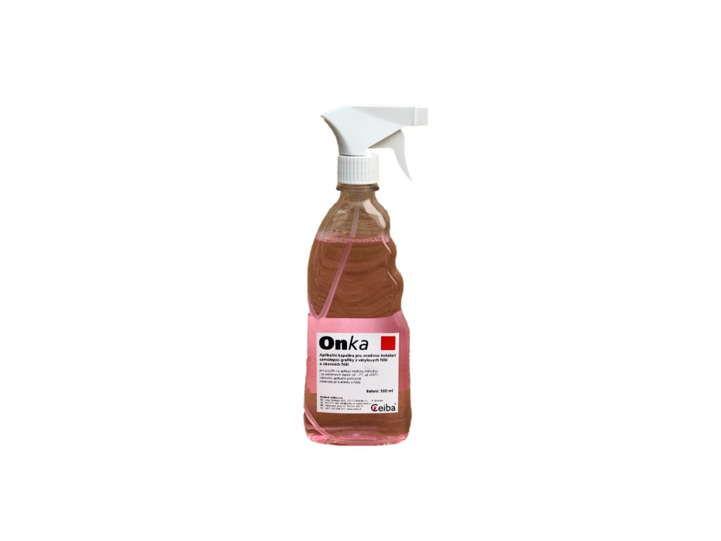 Aplikační kapalina pro ulehčení aplikace samolepicí grafiky, s mechanickým rozprašovačem. Eliminuje vzduchové bubliny, zvrásnění a umožňuje manipulaci s předmětem během aplikace. Zlepšuje počáteční lepivost motivu po aplikaci. Umožňuje aplikaci i při extrémních teplotách od - 7 do + 60 st. C.