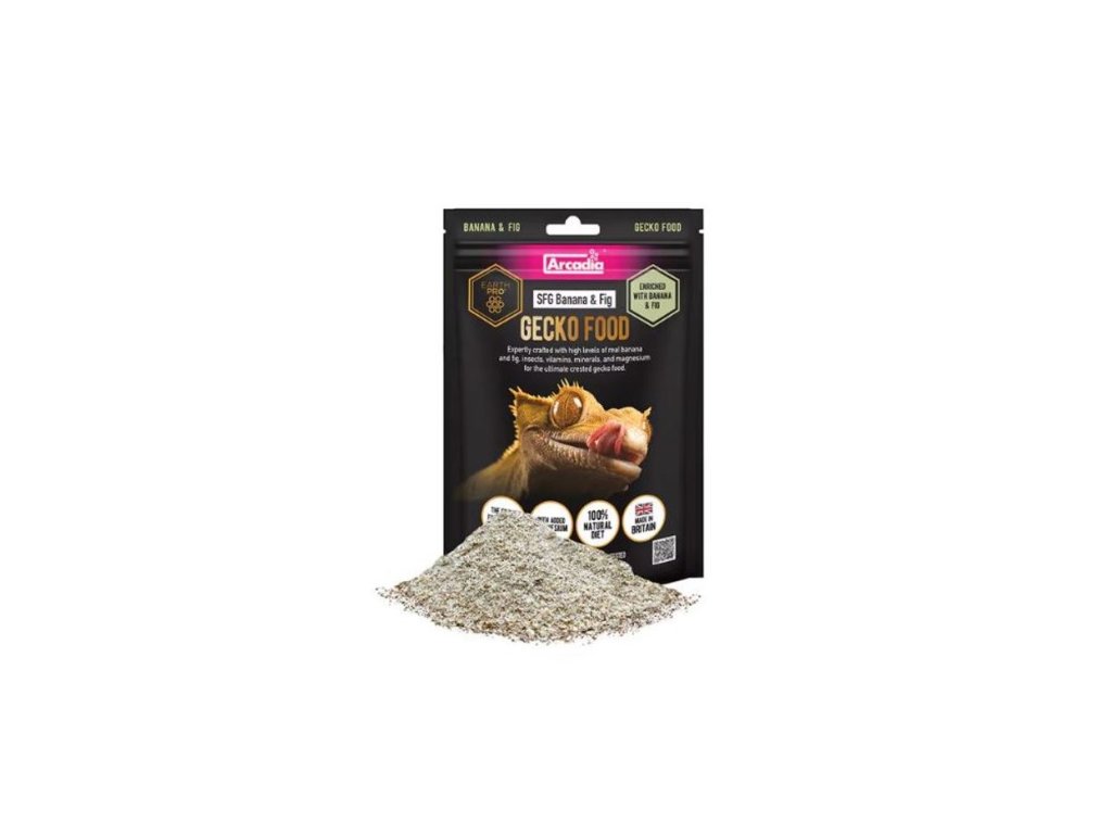 Kompletní zcela přírodní, vysoce výživné krmivo pro gekony. Obsahuje vysoké množství hmyzu, ovoce, také vitamíny a minerály (včetně přidaného hořčíku), které pomáhají udržovat optimální zdraví. EarthPro SFG speciálně navržených pro všežravé druhy, jako jsou Pagekoni, Phelsumy, ale i další plodožraví plazi jako Scinkové nebo ještěrky.