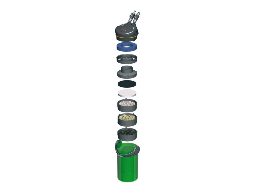 - Je okamžite funkčná a už obsahuje potrebný filtračný materiál na mechanické (filtračná špongia, filtračná vlna), biologické (Substrat pro) a absorpčné (Ehfi Karbon) čistenie vody.