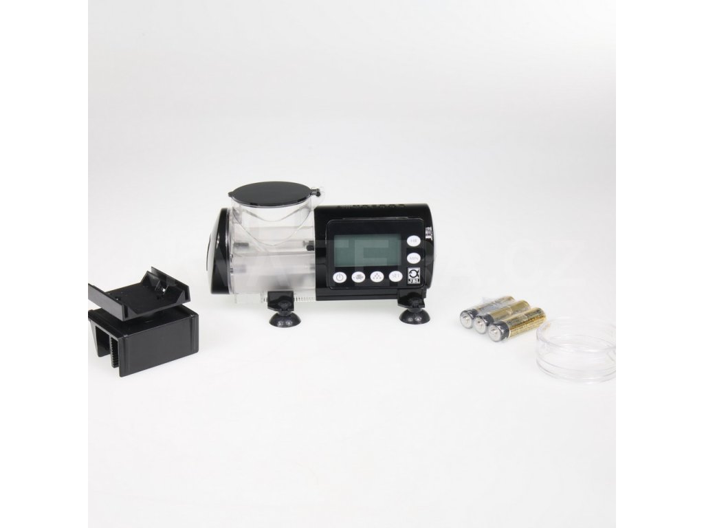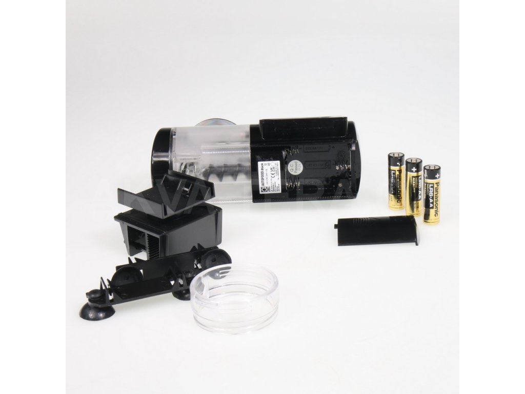 Praktické automatické kŕmne zariadenie: automatické kŕmenie akváriových rýb - pre akékoľvek granule do 3 mm. Balenie obsahuje: Balenie: automatické kŕmidlo pre akváriové ryby s montážou a 3x 1,5 V AA batérie.
