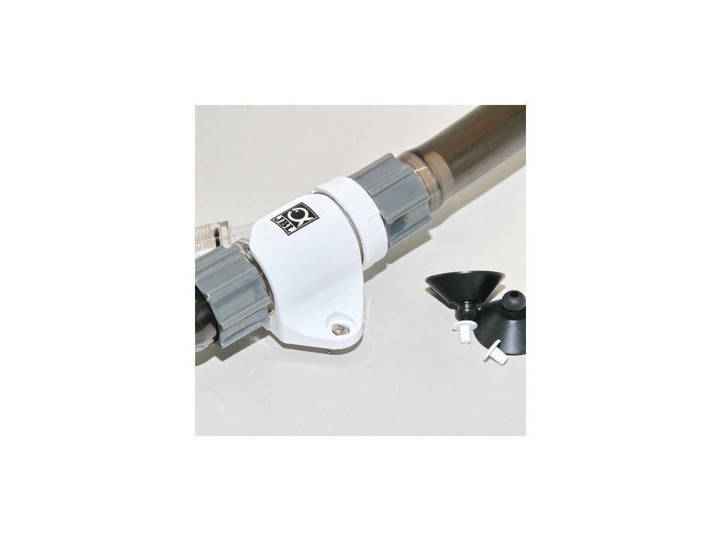 - Hadici zpětného vedení vody z vnějšího filtru rozpojte, namočte membránu difuzéru, zabudujte INLINE DIFUZÉR, připojte hadici na CO2, nastavte počet bublin