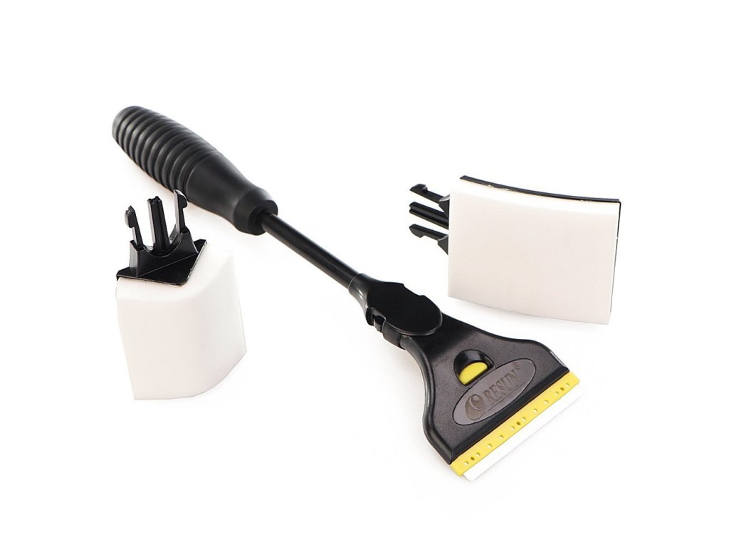 - Kovová škrabka: Skvělá na odstraňování tvrdších usazenin a odolných nečistot z povrchu skla.