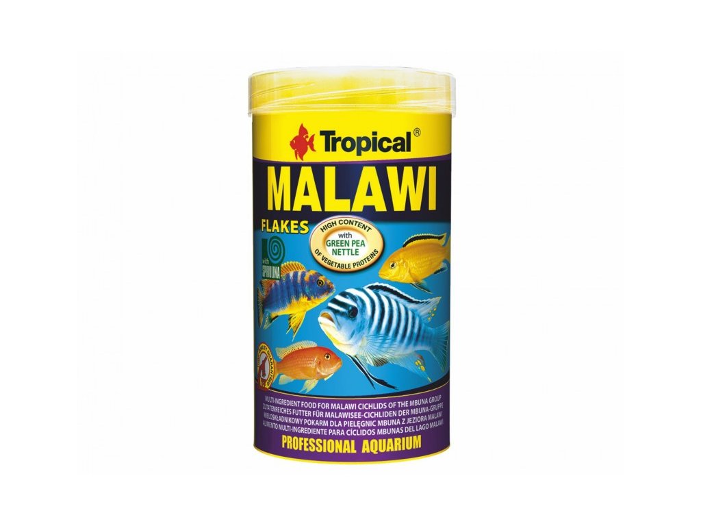 Viaczložkové vločkové krmivo s vysokým podielom rastlinných zložiek (špenát, žihľava, spirulina, pšeničné klíčky atď.), určené na denné kŕmenie mbuna z jazera Malawi. Neobyčajne rozmanité zloženie krmiva zaručuje rybám vynikajúcu kondíciu a krásne farby a priaznivo ovplyvňuje ich schopnosť rozmnožovať sa. Vlákno a žihľava upravujú fungovanie dlhého tráviaceho traktu drobných rýb. Zdroj dobra vstrebateľné bielkoviny sú okrem iného zelený hrášok a spirulina. Pšeničné klíčky poskytujú cenné nenasýtené mastné kyseliny. Dodatok L-karnitín podporuje metabolizmus tukov. Dokonalé chuťové vlastnosti potravín malawi Flakes sú ľahko prijímané dovážanými rybami. Pre na spestrenie stravy drobných rybiek odporúčame Super Spirulina Forte.